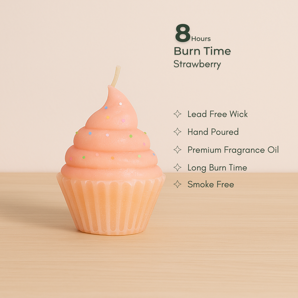Introducing the Strawberry Cupcake Candle - a delightful sensory experience indicative of soft, fluffy, and moist strawberries. Its vibrant fragrance bursts with fruity aroma, creating an irresistible ambiance for any occasion, be it birthdays or gifting. Made from a blend of palm and paraffin wax, expect a steady, low-smoke burn every time. Enjoy the sweet, vanilla, and almond-like intensity without overwhelming your senses. Strawberry-scented candles add an elegant touch to any occasion.