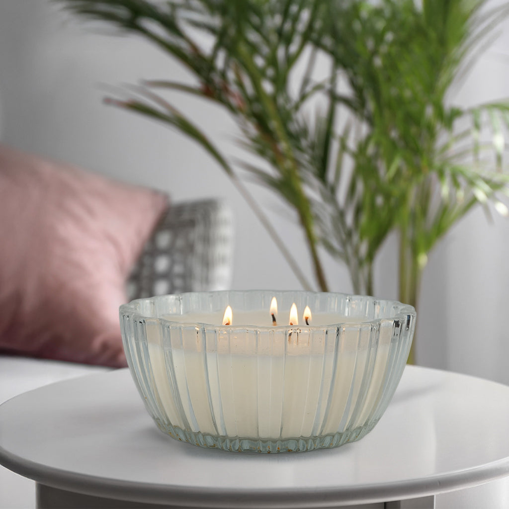 The scalloped glass vessel lends a refined, artisanal touch, making it a beautiful addition to bedrooms, reading nooks, or self-care spaces. Its subtle glow and gentle fragrance help transform everyday moments into rituals of calm.