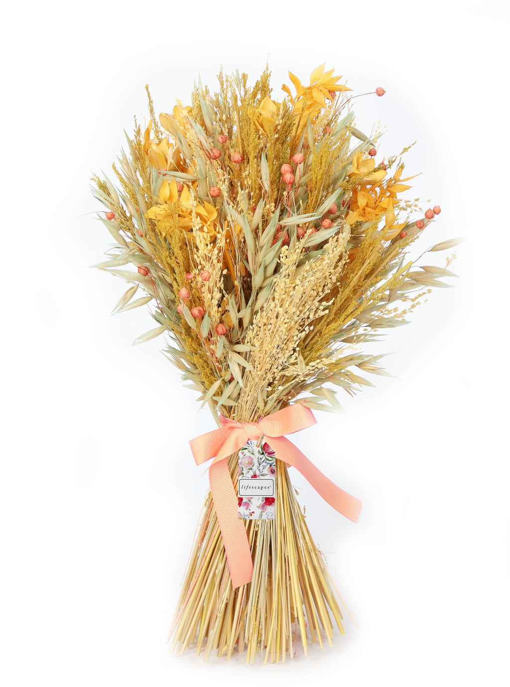- Carefully curated dried floral bunch with natural textures