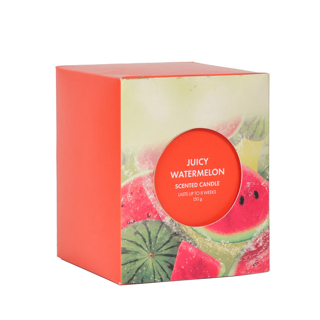 - A vibrant scented candle featuring the sweet, refreshing aroma of juicy watermelon.